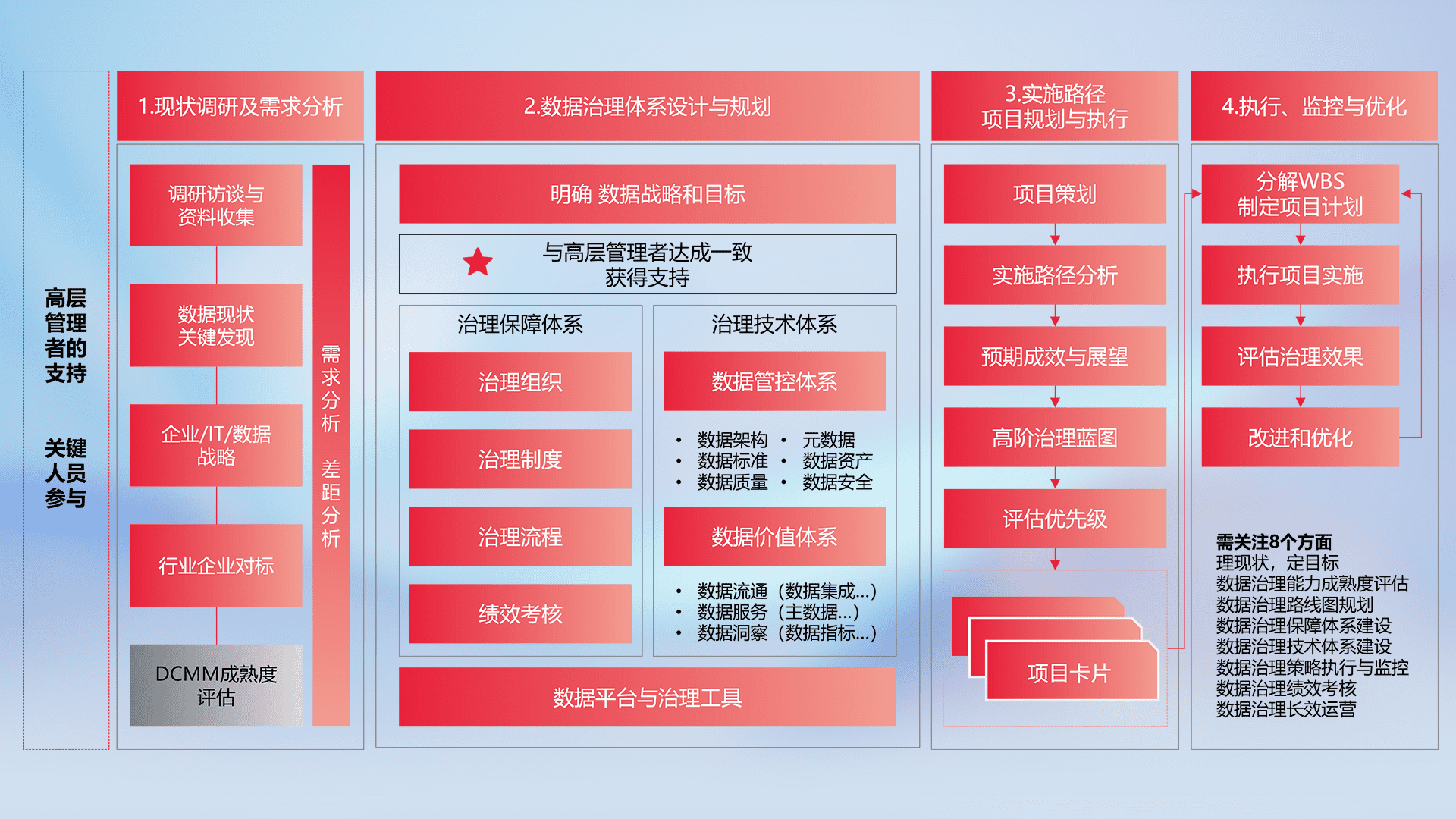 制定并执行统一的数据标准,,规范数据定义和格式,,消除冗余和不一致性,,,,实现跨部门和跨系统的数据一致性,,,,为企业提供标准化的数据基础。。。